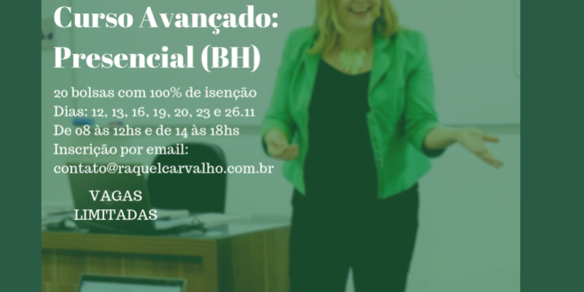 Desistência: Em caso de impossibilidade de comparecimento ao mínimo de 75% das aulas, o inscrito deverá comunicar a desistência de participação no curso, por email dirigido a contato@raquelcarvalho.com.br, até o início das aulas.